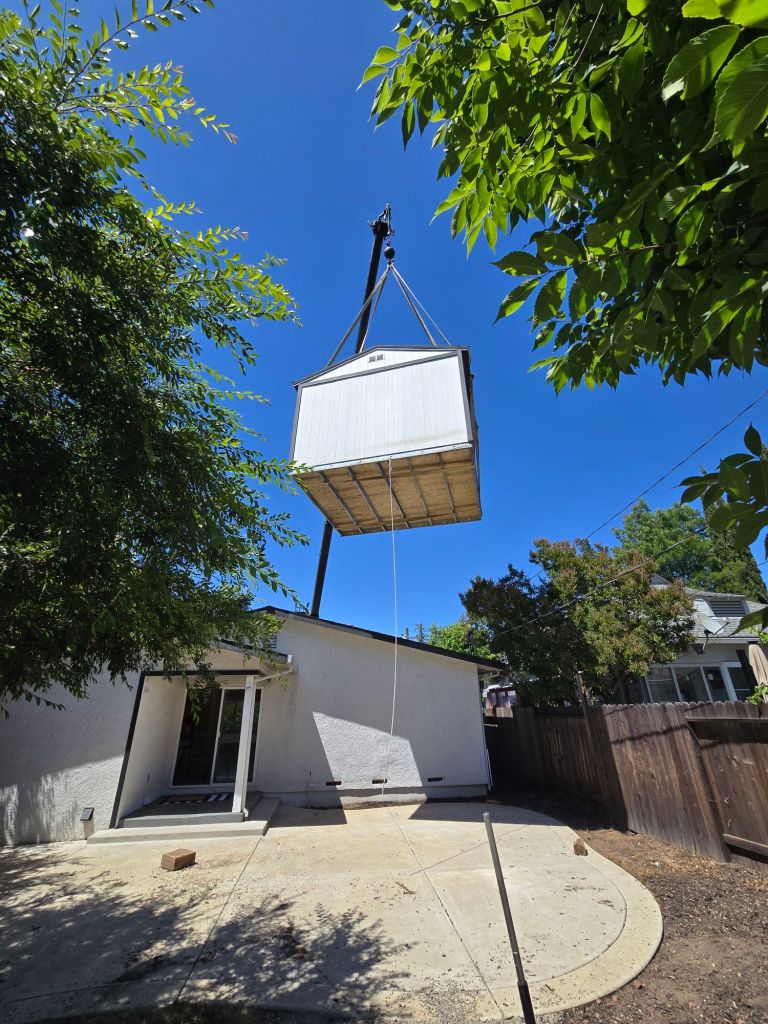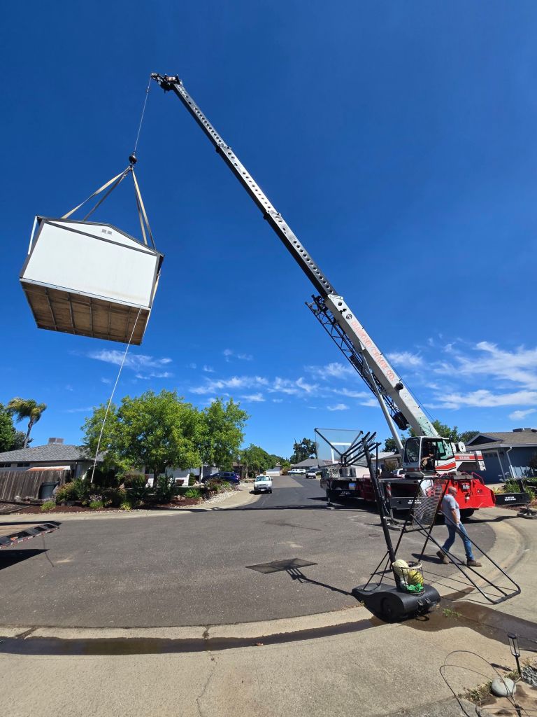 What started off as a typical crane job, ended up to be a real tight squeeze to get the shed where we wanted it to be!